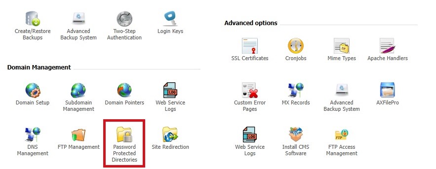 ورود به بخش Password Protected Directories در دایرکت ادمین