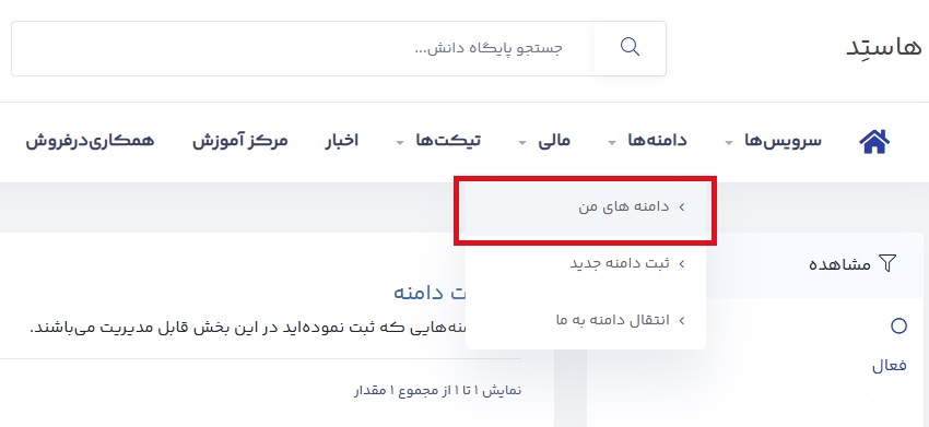 ابتدا وارد حساب کاربری خود شوید و دامنه موردنظر را انتخاب کنید.