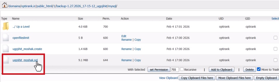 - مواردی که دارای پسوند sql. هستند دیتابیس هاست سیپنل شما میباشند. گزینه مورد نظر را انتخاب و دانلود